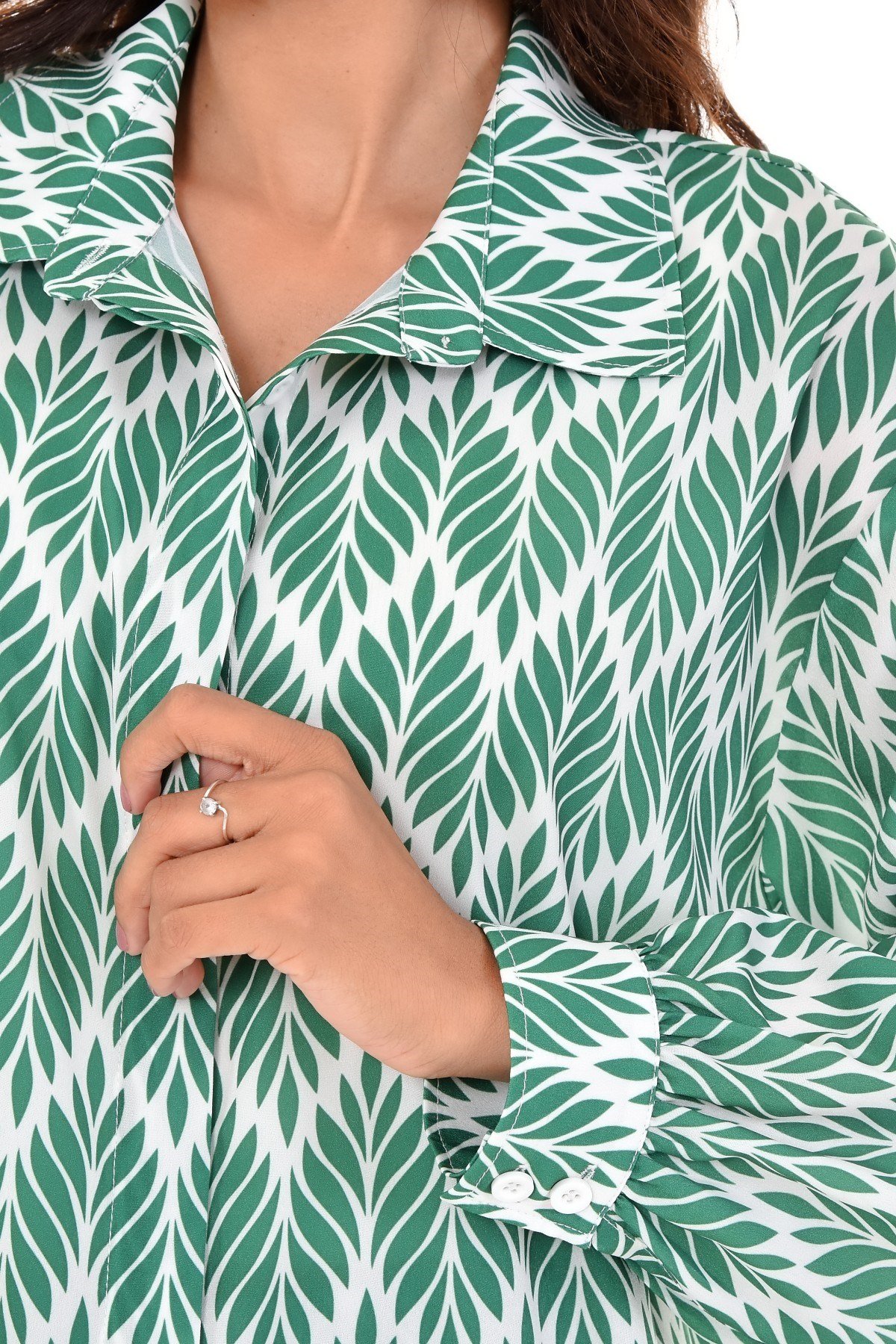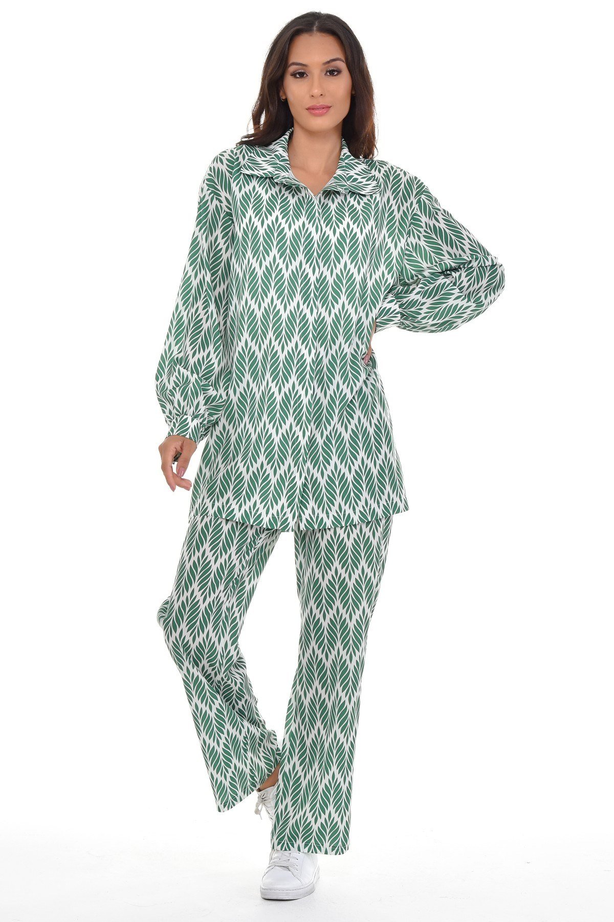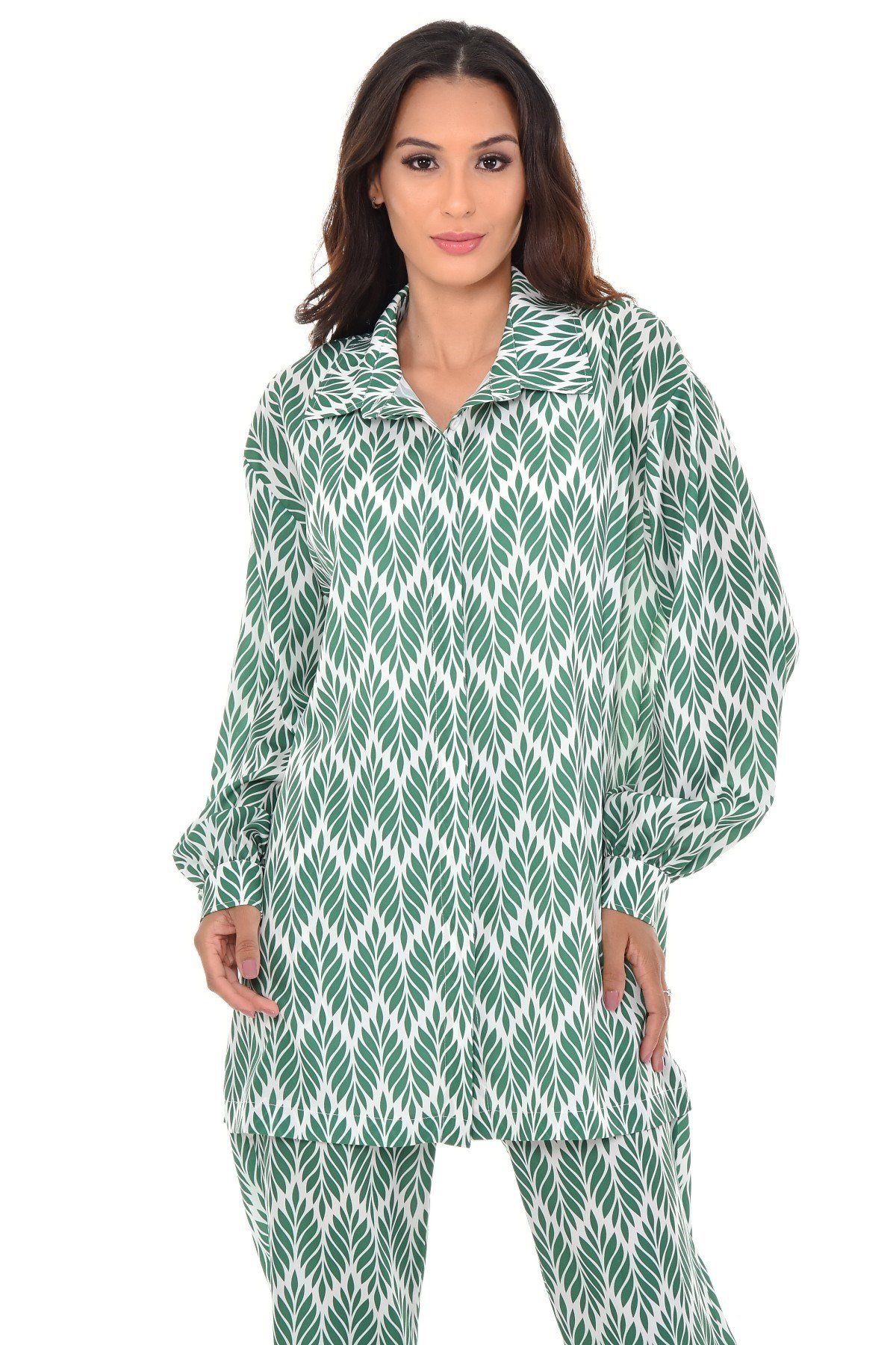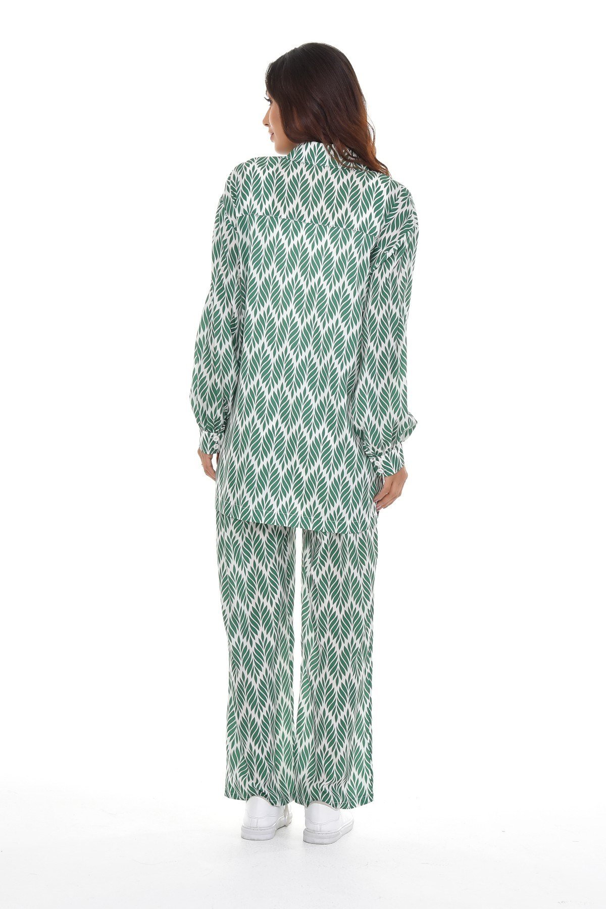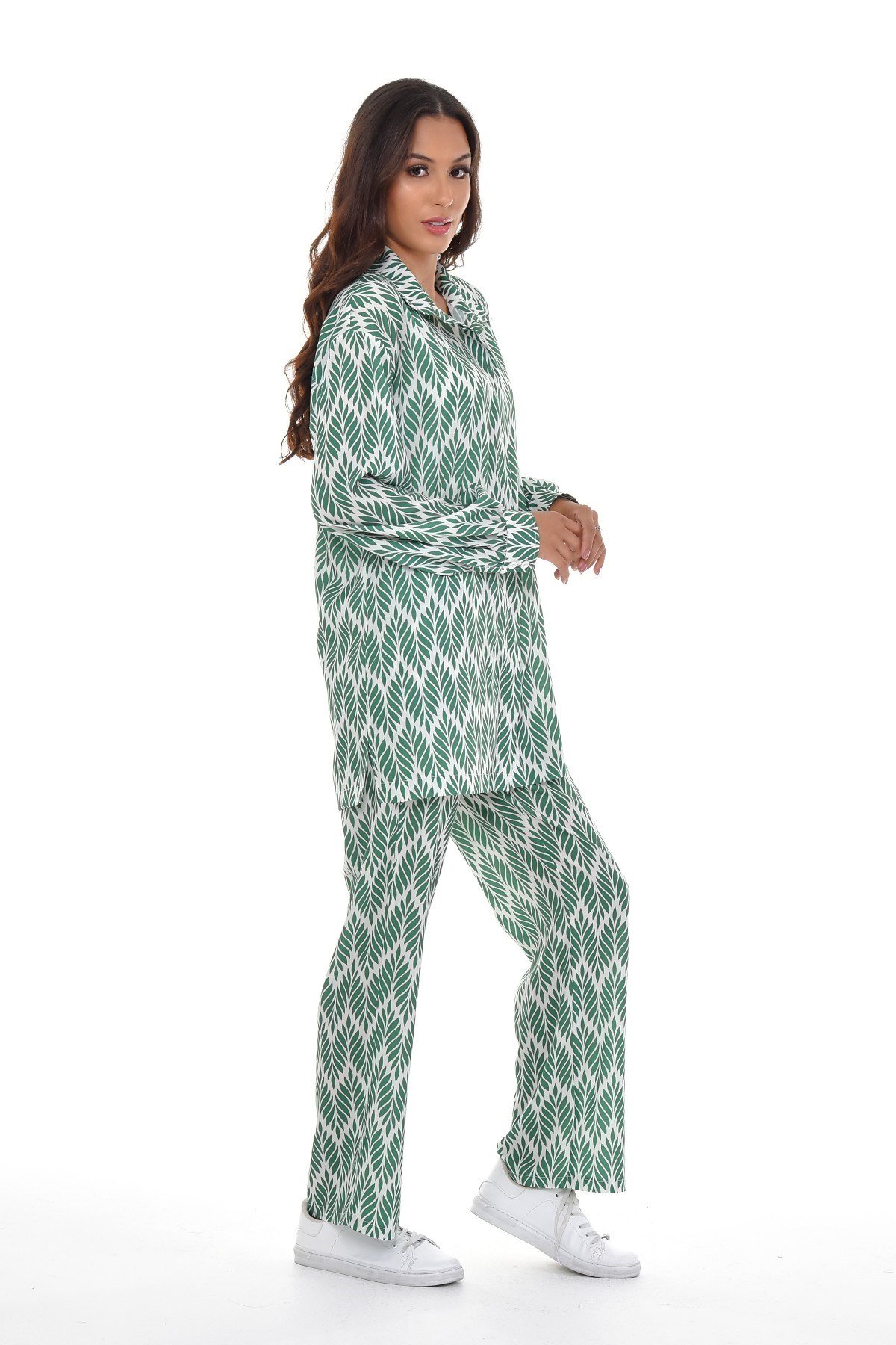 Women's Leaf Patterned Shirt and Trousers Green Suit