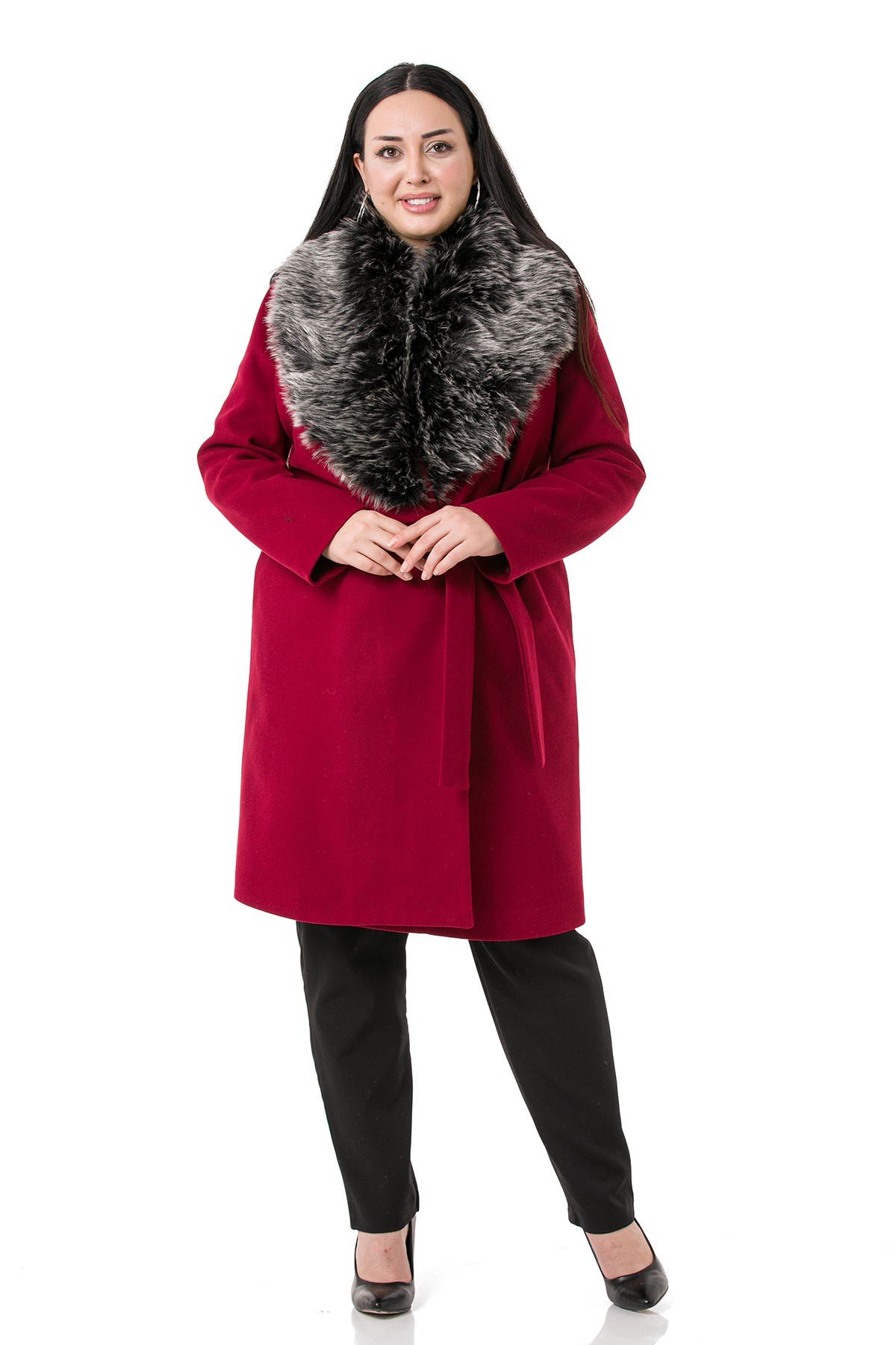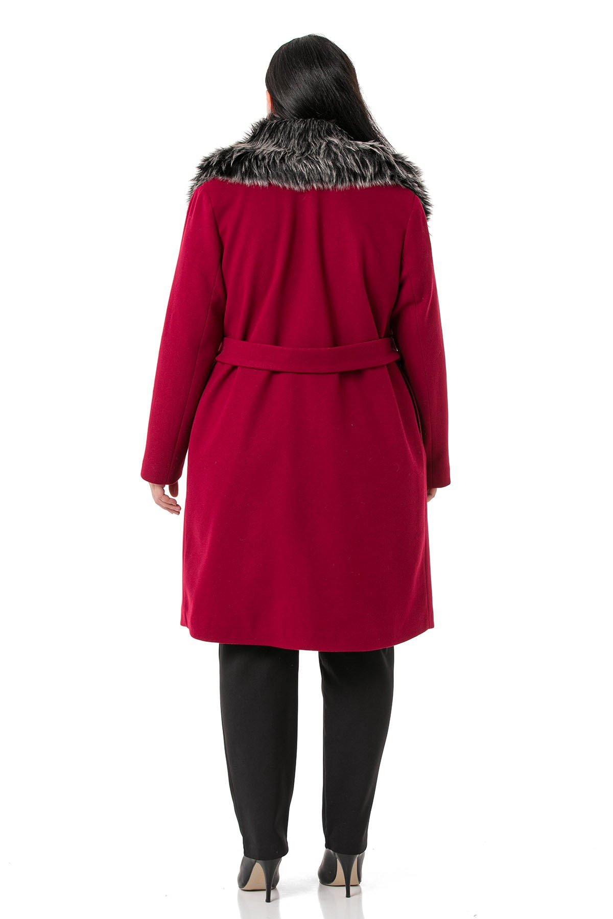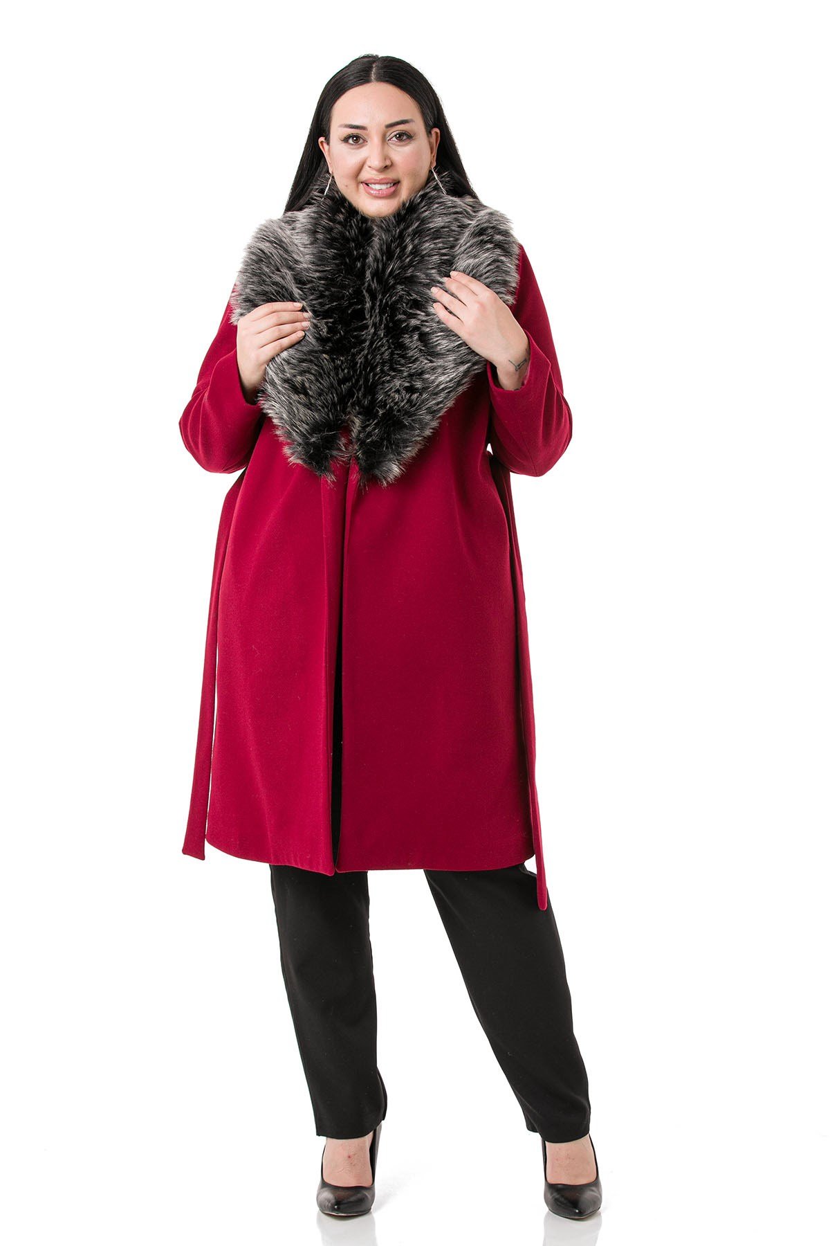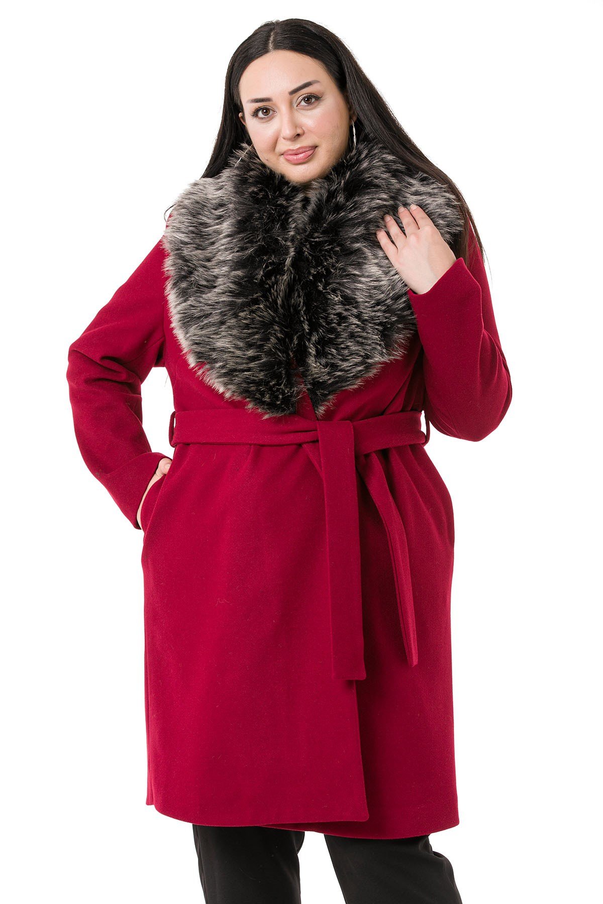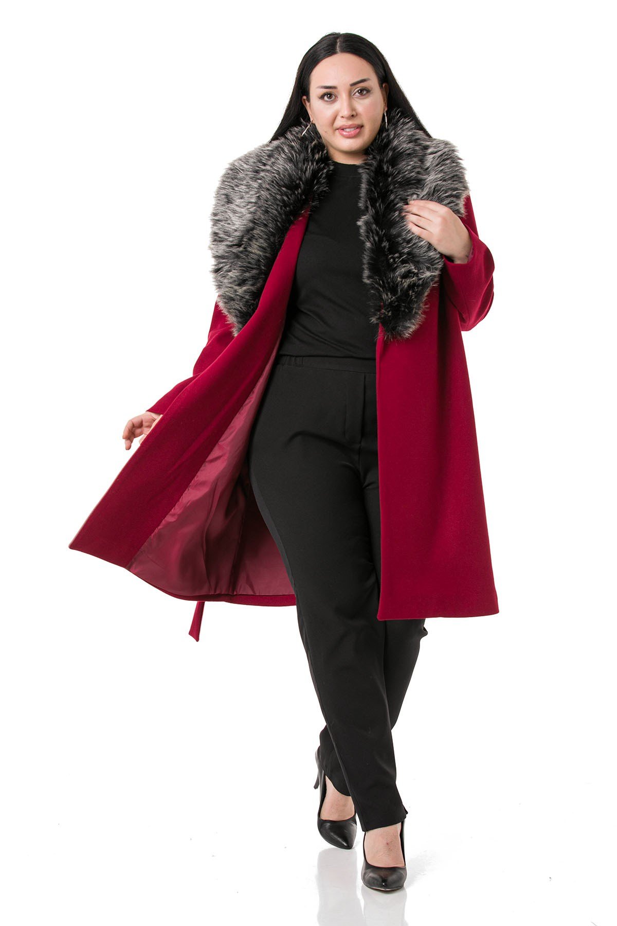Plus Size Burgundy Cashmere Overcoat with Fur Collar and Side Pockets