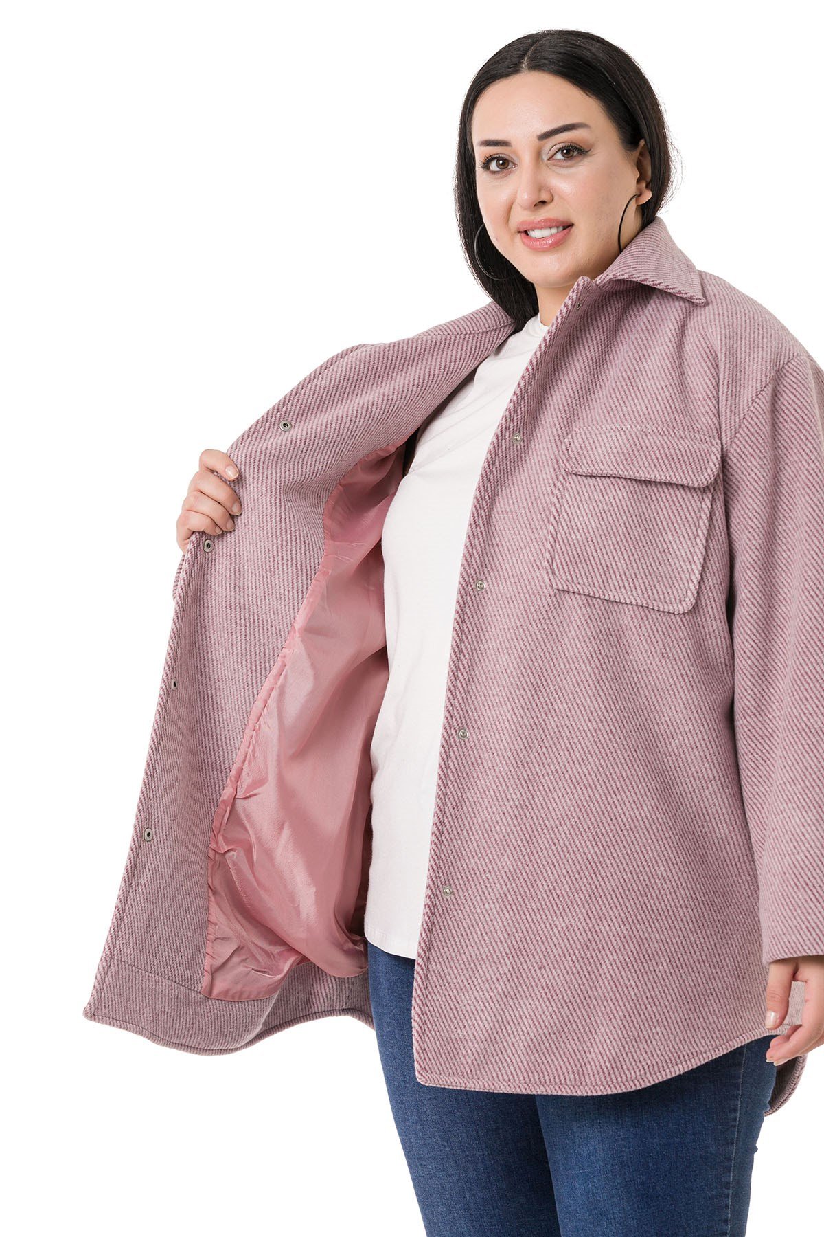 Plus Size Herringbone Woven Light Pink Overcoat with Flap Pockets