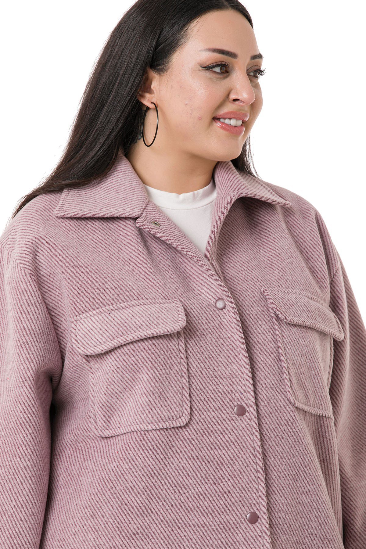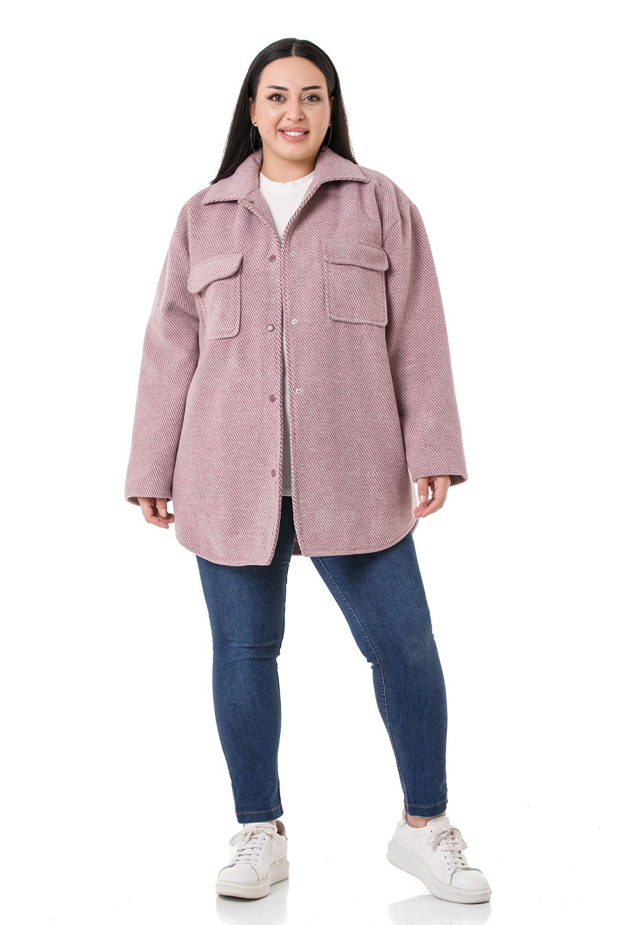 Plus size shirt collar, snap fastening, flap pockets, lined herringbone woven coat.