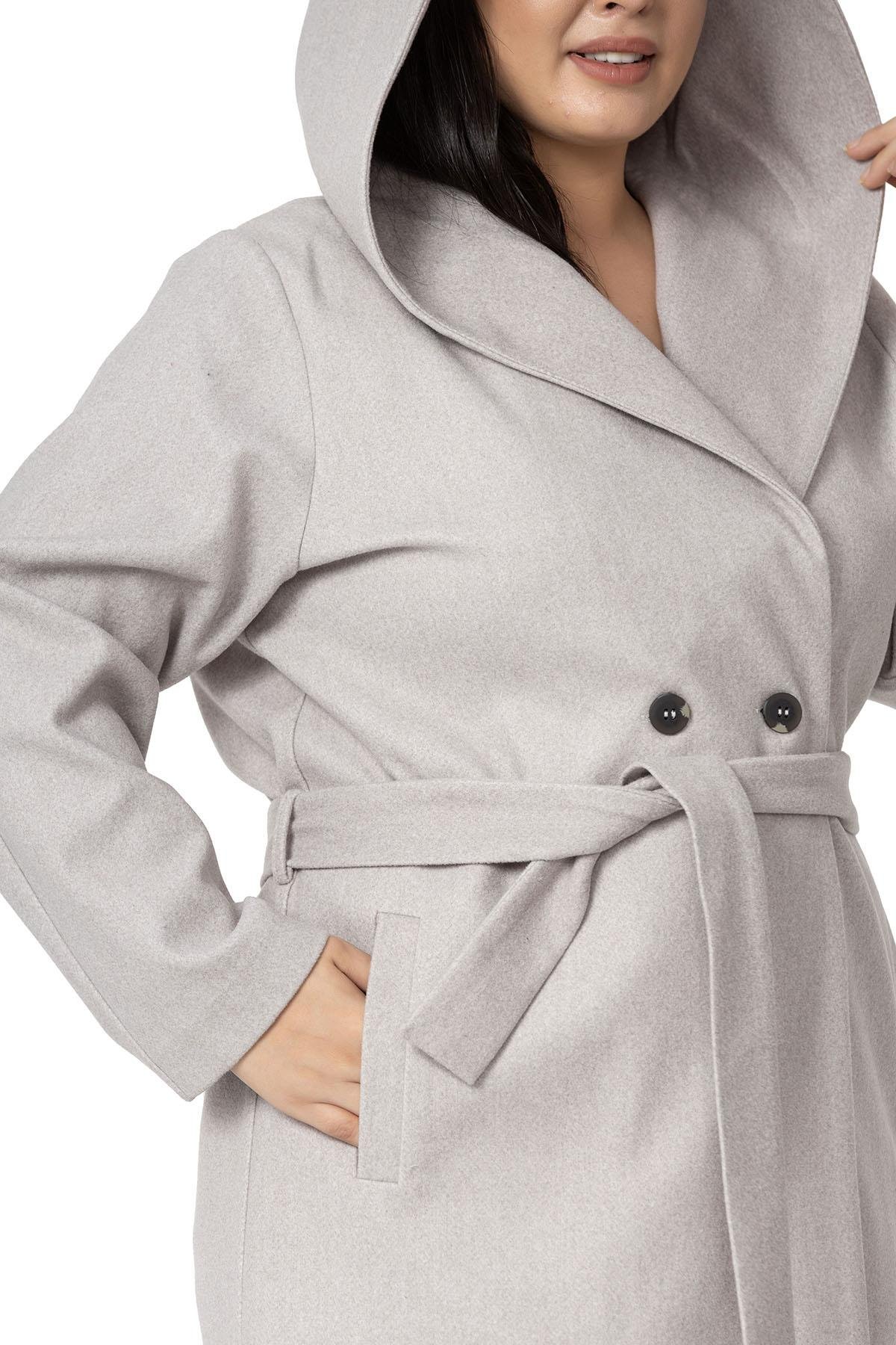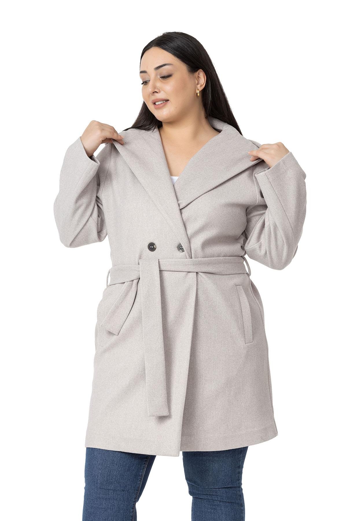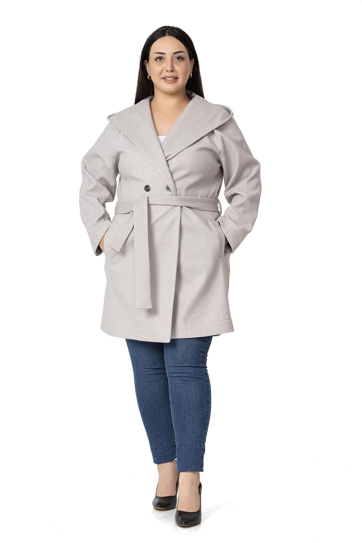 Plus size hooded, button-fastened, flap pockets, belted unlined coat.
