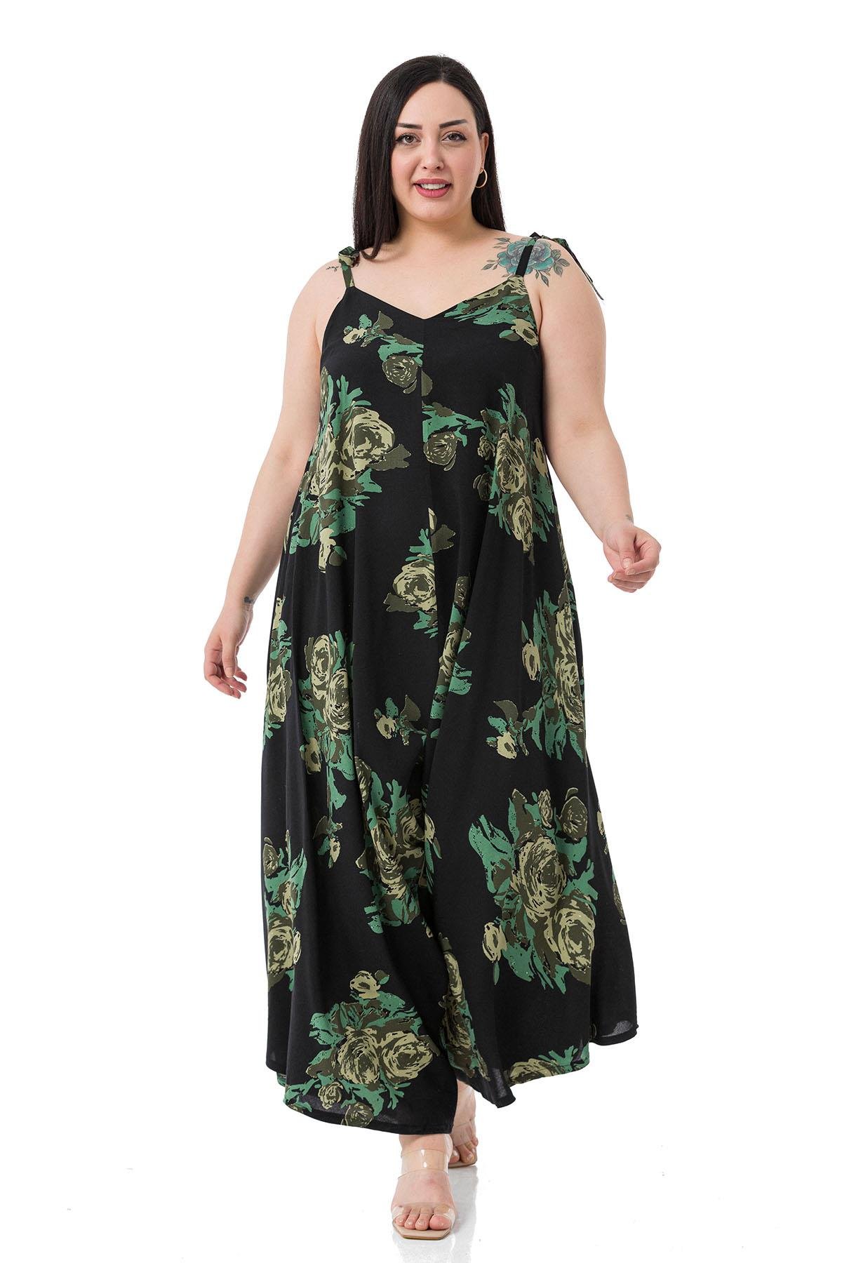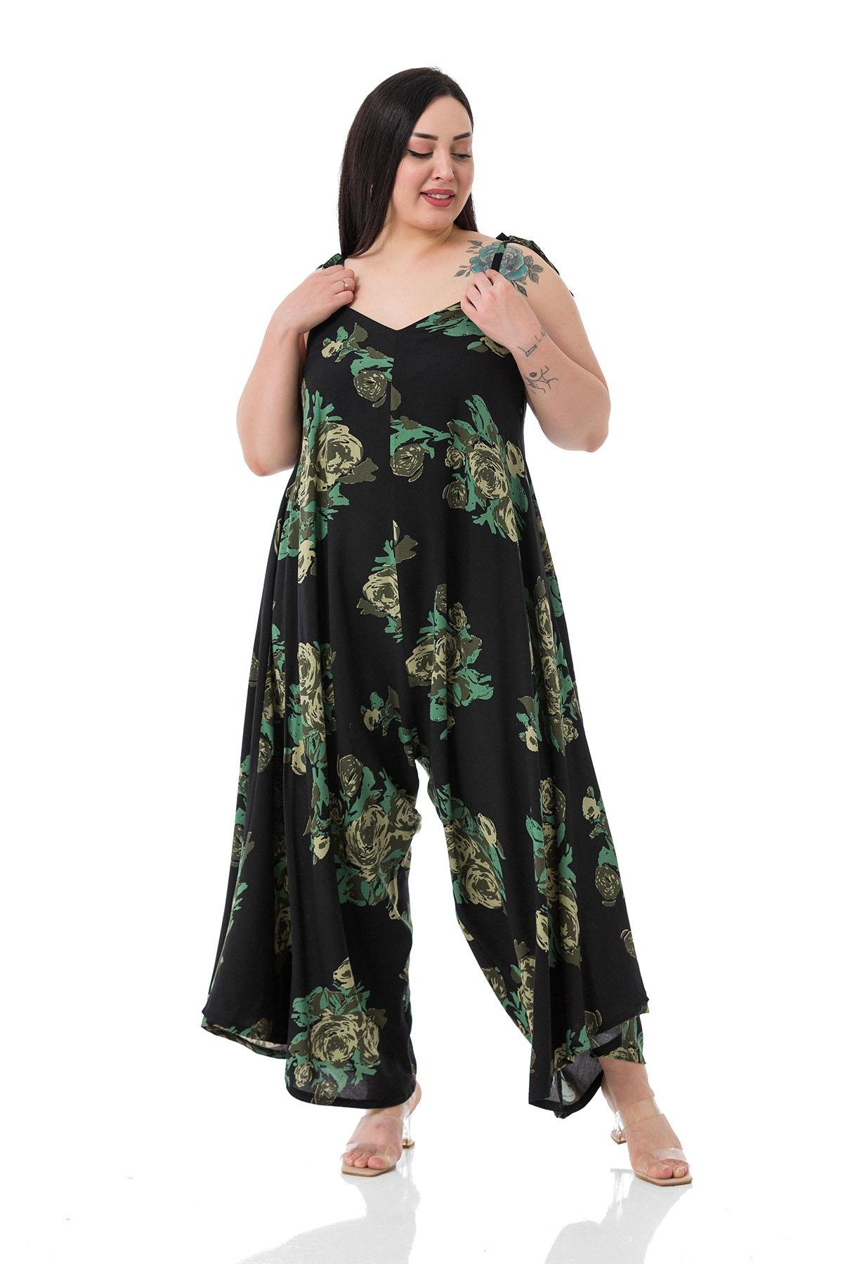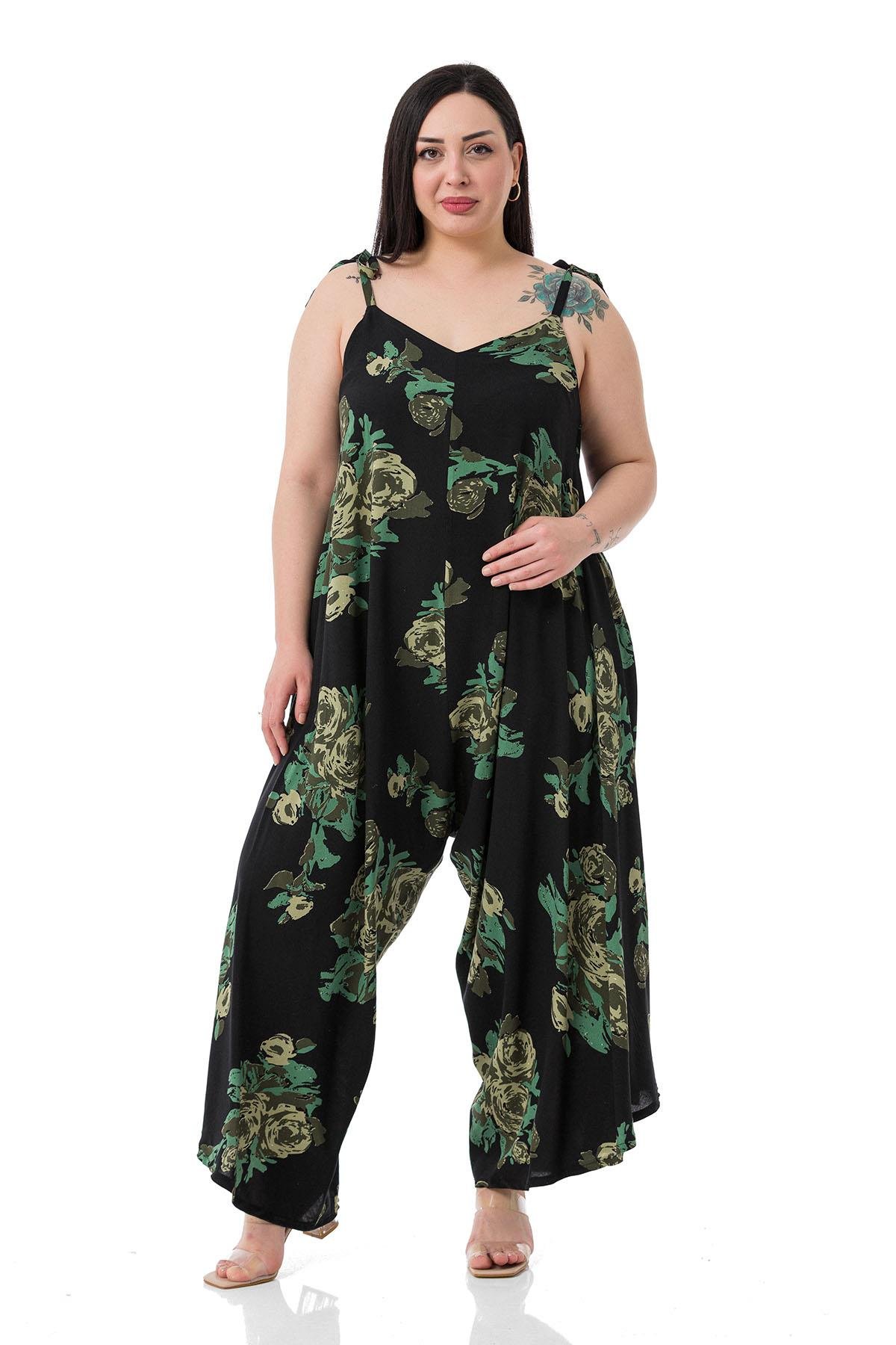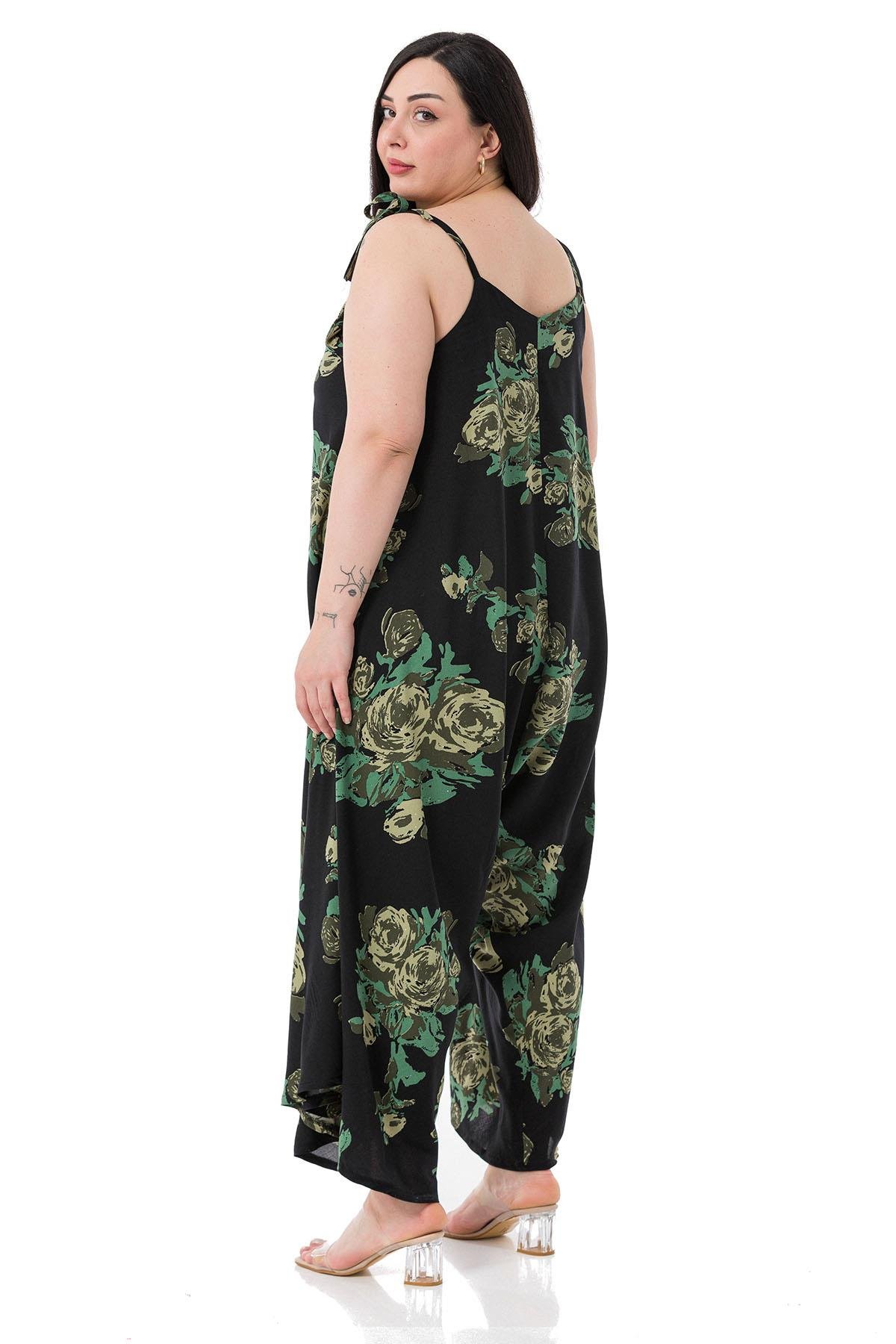 Plus Size Woven Viscose Green Floral Jumpsuit