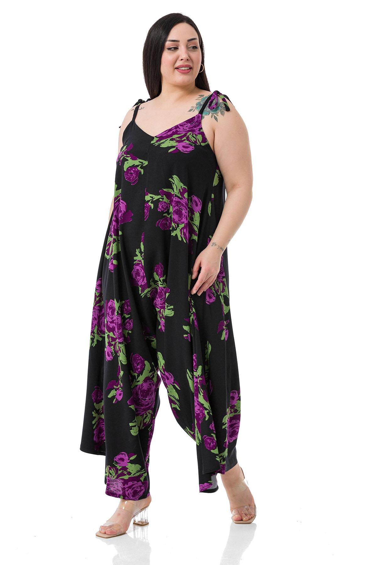 Plus Size Woven Viscose Orange Floral Jumpsuit Plus Size Woven Viscose Green Floral Jumpsuit